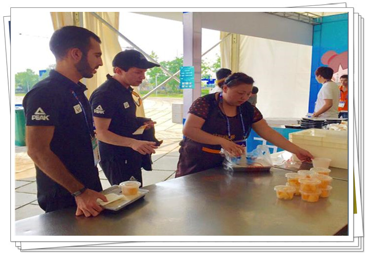 赛事时代,,,,,,,,为确保服务事情的有序举行,,,,,,,,公司组织专人专车全程服务,,,,,,,,从破晓四点最先忙碌到晚上十点才竣事,,,,,,,,天天准时准点的将3000余份全心制作的营养康健餐食送到赛事后勤事情职员手中,,,,,,,,快要百种日用品、水果、休闲食物、西式面点等送抵达服务所在。。。。。。。
